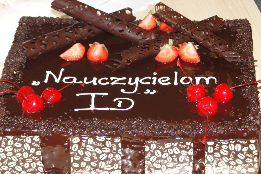 W pokoju nauczycielskim czekały na nauczycieli i pracowników torty i ciasta od różnych klas, jednak największy zachwyt wśród wszystkich wzbudził tort podarowany przez kl. I D. Cieszył on nie tylko oko, ale przede wszystkim podniebienie.