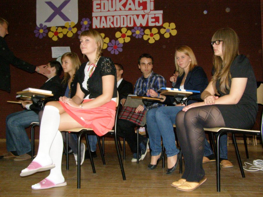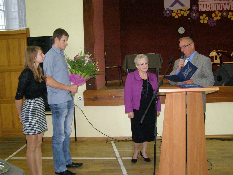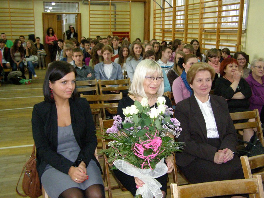 W dniu 13 października uroczyście obchodziliśmy Dzień Edukacji Narodowej. Od rana w szkole panowała sympatyczna atmosfera. Uczniowie reprezentujący Samorząd Uczniowski Mateusz Zaręba, Damian Skłodowski, Adam Łut, Izabela Szymańska, Alicja Jemielita i Olga Spiżewska w głównym korytarzu witali wchodzących nauczycieli słodkim upominkiem. Podczas przerw co chwila widać było uczniów biegających z kwiatkami, słodyczami i upominkami. Dziś w taki właśnie sposób mogli oni podziękować swym nauczycielom, wychowawcom, dyrekcji, pracownikom obsługi i administracji za cały trud wkładany w przekazywanie wiedzy i wzorowe funkcjonowanie szkoły.