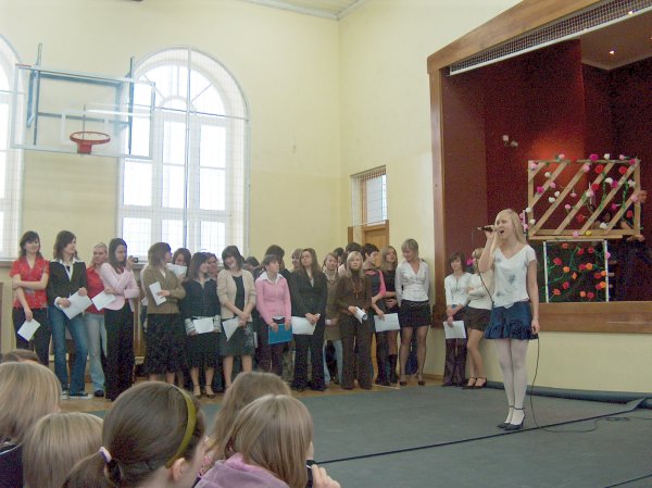 Piosenki o wiadomej tematyce przewijające się przez cały apel były jak zwykle doskonale wykonane – zarówno chór jak i soliści spisali się na piątkę. I choć napisano z pewnością ciekawsze piosenki o miłości niż niektóre z zaprezentowanych, to przecież najbardziej liczy się jakość wykonania? Jednym słowem – nasi artyści zadziałali na te mniej lub bardziej ukryte wrażliwe struny naszych serc ( ha – ha )