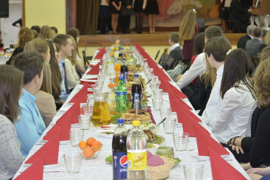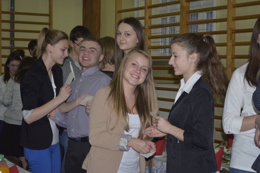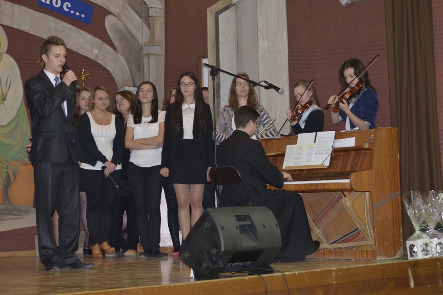 18 grudnia w naszej szkole odbyła się uroczysta Wigilia. Zaproszeni goście, rada pedagogiczna, pracownicy szkoły i delegaci klas poczuli atmosferę świąt, oglądając program słowno-muzyczny, który przygotowany został pod kierunkiem p.D.Olender. Oprawą muzyczną zajęli się nasi utalentowani uczniowie z ks.A.Ładą na czele. Podczas spotkania przyjaciele Koperniczka, w geście podziękowania, otrzymali drobne upominki. Nie zabrakło również wspólnego kolędowania. Przy piosence „Przekażmy sobie znak pokoju”, trzymając się za ręce utworzyliśmy krąg. W ten sposób magiczna aura zbliżających się swiąt dotarła do każdego z zebranych. Po części artystycznej przyszedł czas na tradycyjne dzielenie się opłatkiem oraz na smakowanie wigilijnych potraw. Uroczystość sprawiła, że wszyscy poczuliśmy magię Świąt Bożego Narodzenia.