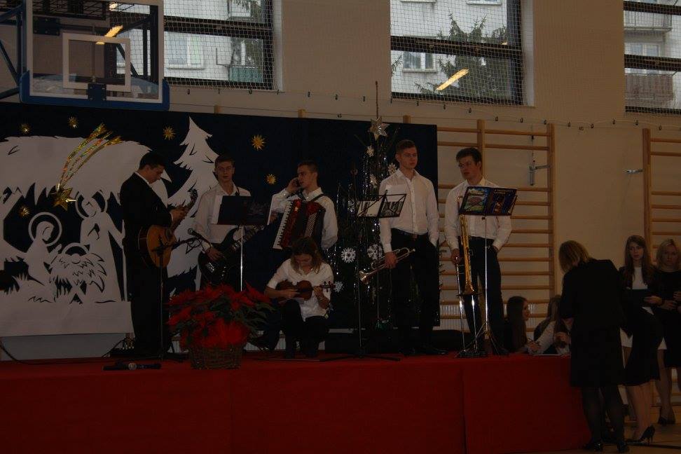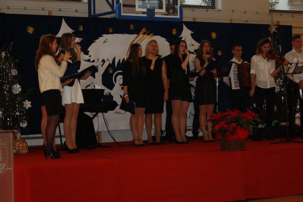 W dniu 18 grudnia odbyła się w naszej szkole Wigilia Szkolna. Dyrekcja, kadra pedagogiczna, pracownicy szkoły, rodzice i uczniowie spotkali się, aby podzielić się opłatkiem. Uroczystość uświetnił koncert kolęd w wykonaniu uzdolnionej młodzieży naszej szkoły. Popłynęły przepiękne kolędy takie jak: „Cicha noc”, „Oj Maluśki”, „Bóg się rodzi”, „Pójdźmy wszyscy do stajenki”. Życzenia świąteczne przekazał Pan Dyrektor Waldemar Bartosik, Przewodniczący Rady Rodziców Pan Witold Zadroga oraz Przewodnicząca Koła Wychowanków Pani Barbara Jaroszkiewicz.