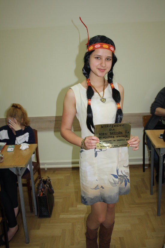 4. Wyróżnienie za najciekawszy kostium otrzymała Monika Brzostek kl II A – talon upoważnia do jednego dnia bez pytania w roku szkolnym 2014/2015