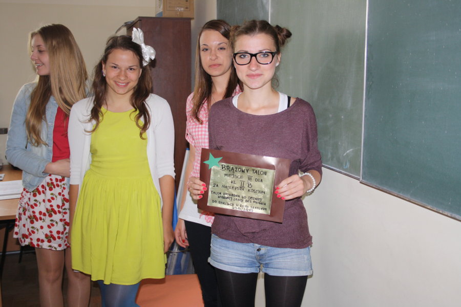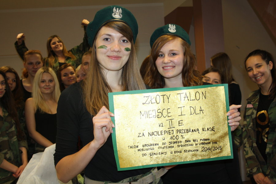 1. Jedyną klasą, która przebrała się w 100% była klasa II E (żołnierze) i to oni zdobyli złoty talon i I miejsce – talon upoważnia do jednego dnia bez pytania oraz możliwości odwołania sprawdzianu w wybranym dniu w roku szkolnym 2014/2015