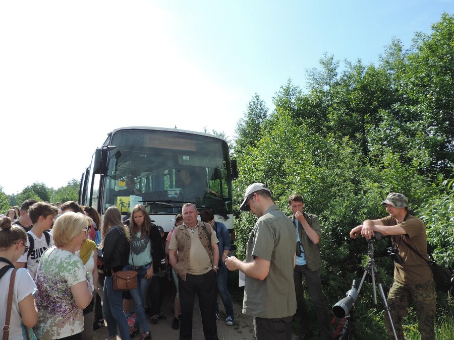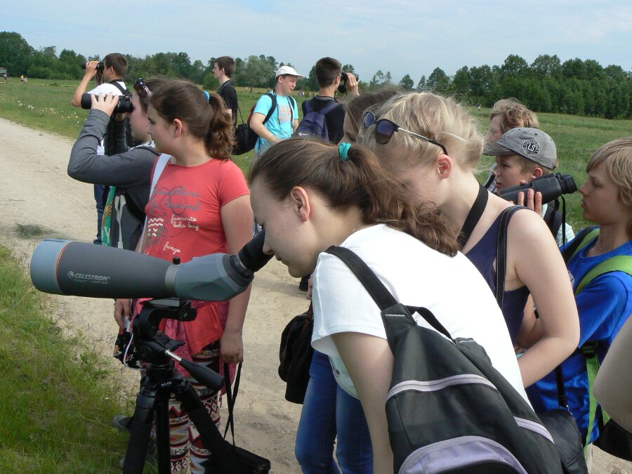 Dnia 2 czerwca już po raz trzynasty odbyły się Ostrowskie Spotkania Ornitologiczne, czyli konferencja popularno-naukowa skierowana do młodzieży szkolnej i nauczycieli, zorganizowana przez Centrum Ekologii i Zrównoważonego Rozwoju w Powiecie Ostrowskim. W tym roku we współorganizację Spotkań włączył się również Urząd Miasta z burmistrzem p. Jerzym Bauerem na czele – głównym inicjatorem i pomysłodawcą tej cyklicznie odbywającej się imprezy. Tradycyjnie, pod opieką p. Pawła Cieśluka, w zajęciach brała udział grupa uczniów naszego Liceum – tym razem 14 osób z klas pierwszych i drugich. Wzorem lat ubiegłych konferencja składała się z dwóch części – pierwszej o charakterze zajęć warsztatowych, prowadzonych w dolinie Bugu nad starorzeczem Jezioro Bużysko, położonym niedaleko Morzyczyna Włóki i drugiej, będącej sesją wykładów przeprowadzonych w ośrodku agroturystycznym „Binduga”. Podczas zajęć terenowych, podzielona na grupy młodzież, pod opieką przewodników – ornitologów, miała okazję zapoznać się z głosami i wizerunkami napotkanych gatunków ptaków. Warto wspomnieć tu o kilku najciekawszych i najpospolitszych jak: zięba, rokitniczka, pliszka żółta, piecuszek, potrzos, wilga, bocian biały, skowronek, świergotek łąkowy, trznadel, cierniówka, trzciniak, łabędź niemy (…) oraz rybitwa czarna, która na wspomnianym starorzeczu gnieździ się kolonijnie. Dopisała również pogoda, było bardzo ciepło i słonecznie. Po odbyciu zajęć w plenerze, młodzież udała się na sesję wykładową do jednej z sal ośrodka agroturystycznego „Binduga”, podczas której mogła wysłuchać czterech prelekcji o tematyce przyrodniczej. W kolejności prezentacje swoje wygłosili:
