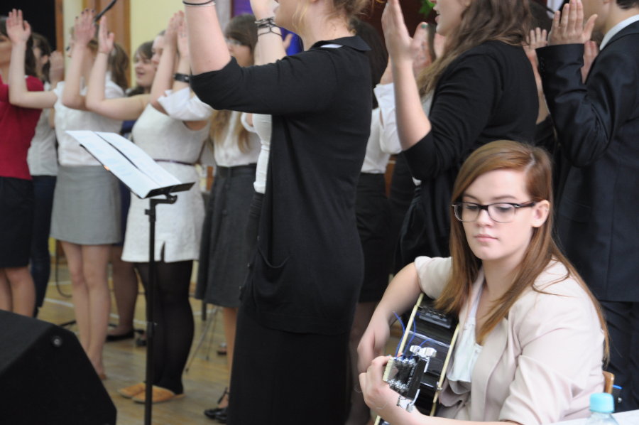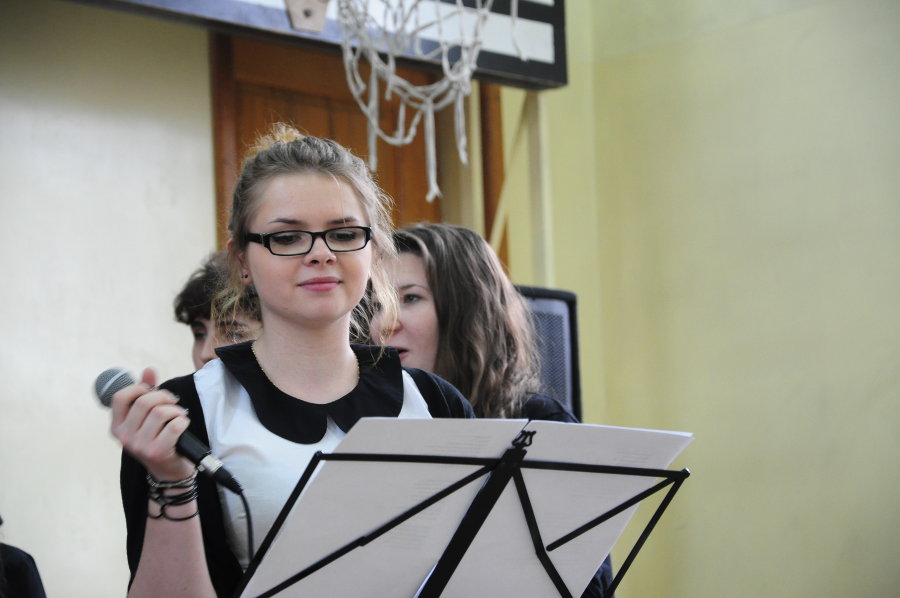 W radości i wspólnotowym przeżyciu uczestniczyli nasi licealiści, którzy zatroszczyli się o nagłośnienie sali oraz aranżację muzyczną przerw między występami gości.