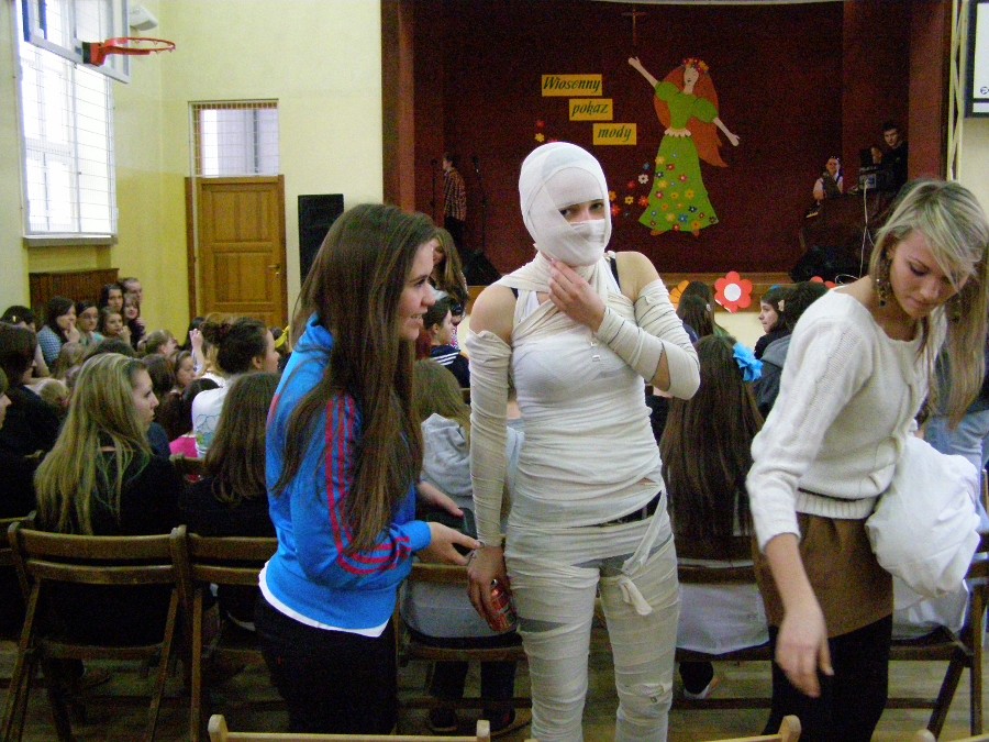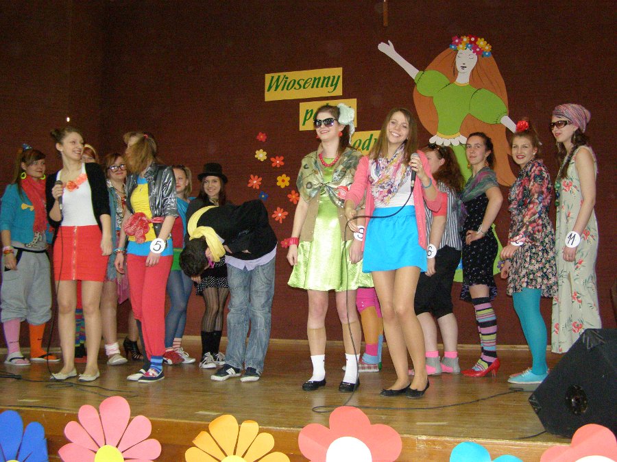 Kandydatki na kicz modelkę wiosny 2012 zaprezentowały się w różnych strojach. W jury zasiadły: Pani wiosna Ala Jemielita, Natalia Grabiańska i Katarzyna Kamińska z kl. II C.