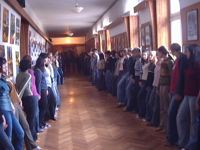 W dniu 23.10.2003r. o godz. 12.00 nauczyciele i uczniowie naszej szkoły zgromadzili się na korytarzu aby uczestniczyć w ogólnopolskiej akcji antynarkotykowej – „Ogólnopolski Łańcuch Czystych Serc”, zapoczątkowanej przed laty przez Pana Marka Kotańskiego i obecnie kontynuowany przez Panią Jolantę Koczurowską.