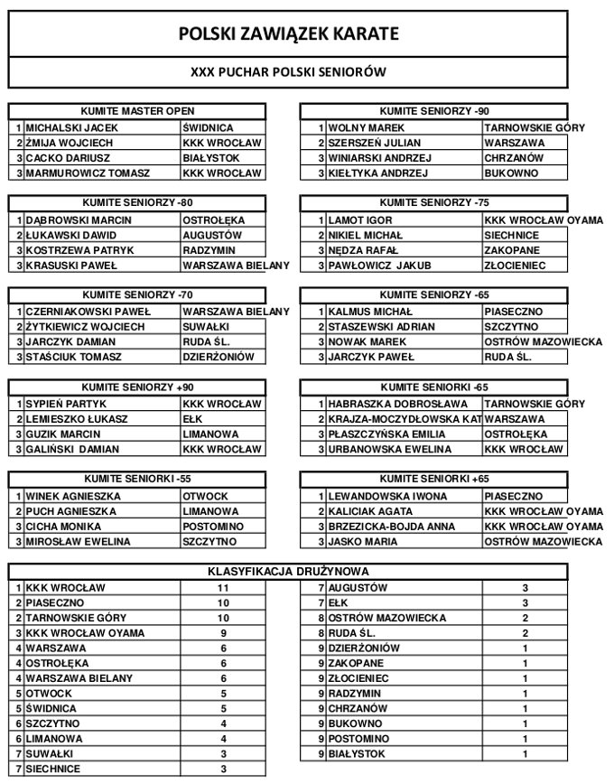 Dnia 23 listopada 2013 roku w Ząbkowicach Śląskich odbył się XXX Puchar Polski Seniorów i X Puchar Polski Juniorów i Młodzików Karate Kyokushin. W zawodach wzięło udział blisko 270 zawodników z 60 klubów z całej Polski. Organizatorem był Ząbkowicki Klub Karate Kyokushin, kierowany przez shihan Witolda Stolarczyka. Sędzią Głównym był shihan Andrzej Drewniak.