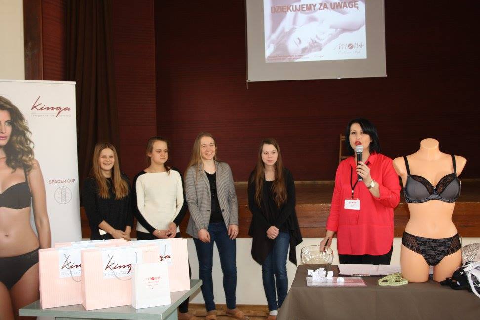 W dniu 25 lutego w ramach programu „Zdrowie piersi są ok” gościliśmy Panią Annę Popławską – brafitterkę, która poinstruowała dziewczęta w jaki sposób należy dobierać rozmiar biustonosza, aby był funkcjonalny. Program realizowany w klasach pierwszych obok profilaktyki raka piersi zawiera treści związane z pielęgnacją i zdrowiem piersi. Stąd wizyta brafitterki w naszej szkole.