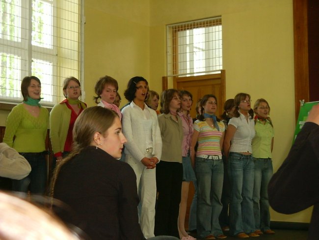Oprócz obecnych jej podopiecznych wystąpiło również dwoje absolwentów: Marta i Piotrek. Scenki były przeplatane krótkimi prezentacjami o innych państwach. Całą uroczystość muzycznie wspomógł wcześniej wspomniany pan Artur ze swoją instrumentalną ekipą, która wykonała m.in. „Taniec węgierski”.