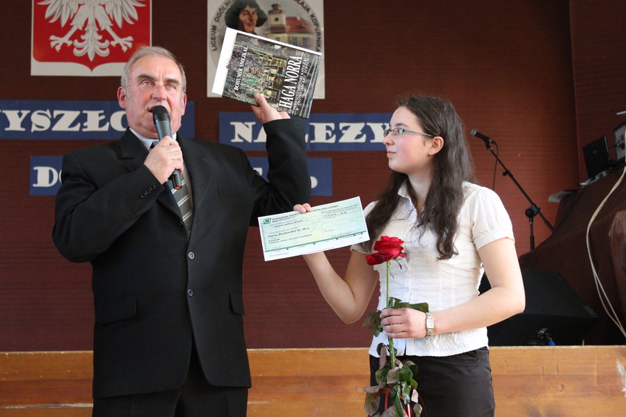 Za uzyskanie najwyższej średniej ocen na świadectwie ukończenia szkoły i wzorowe zachowanie, udział w konkursach matematycznych oraz fizycznych: Polsko-Ukraińskim Lwiątku oraz Fuzji Jądrowej