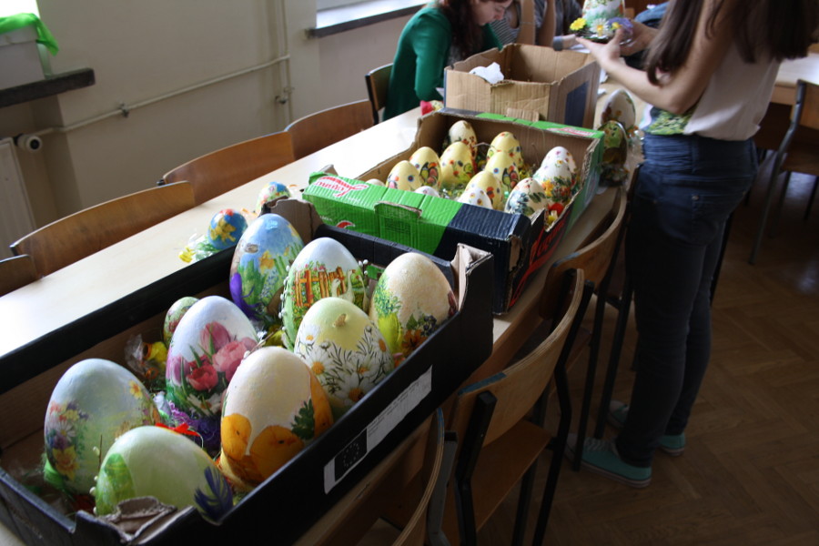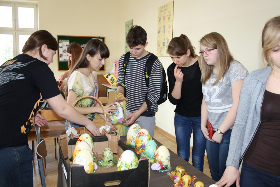 27 marca odbył się kiermasz wielkanocny. Zaangażowaliśmy się w pomoc Ośrodkowi „Warsztaty Terapii Zajęciowej” z Szumowa. W świetlicy można było zakupić piękne jajka styropianowe i ceramiczne własnoręcznie wykonane przez niepełnosprawnych. Akcja została ogłoszona w przeddzień kiermaszu i cieszyła się dużym powodzeniem. Poraz kolejny nasi uczniowie i nauczyciele zaangażowali się w pomoc potrzebującym, a dzięki akcji podopieczni ośrodka będą mogli dofinansować wyjazd na wycieczkę. Połączyliśmy przyjemne z pożytecznym – pomogliśmy potrzebującym, a zakupione przez uczniów jajka zostały sprezentowane wychowawcom z okazji zbliżających się Świąt Wielkanocnych.