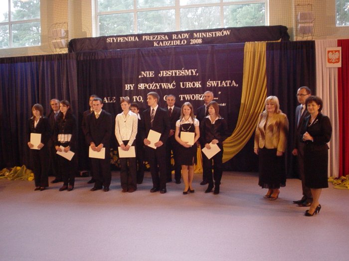 3 listopada 2006r. w Zespole Szkół W Kadzidle odbyła się uroczystość wręczenia Stypendiów Prezesa Rady Ministrów dla wyróżniających się uczniów ze szkół z terenu dawnego województwa ostrołęckiego. Z naszej szkoły Stypendium otrzymała Edyta Bogucka.