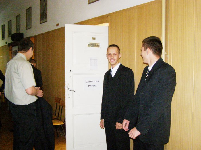 Dzisiaj, 4 maja 2007, abiturienci (trudne słowo) naszego liceum rozpoczęli zmagania z egzaminem maturalnym. Na pierwszy ogień poszedł polski. Tematy, jak to one, dla jednych „śmiesznie proste”, dla innych „z kosmosu”. Takie opinie słychać było na korytarzach po zakończeniu egzaminu. Na ich potwierdzenie będziemy czekać do 29 czerwca. Długo! W poniedziałek, 7 maja, język angielski, następnie przedmioty wybrane „obowiązkowo”, dodatkowe i ustne z języka ojczystego, i obcego nowożytnego. Pestka! DACIE RADĘ!