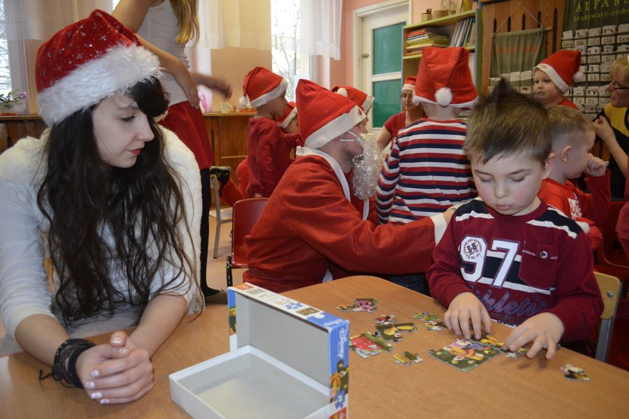 6 grudnia 2013 r. pod opieką Pani Ewy Małyszko i Pani Magdy Konrad, ośmioro uczniów z klasy II e przebrało się za postacie: św. Mikołaja, renifera oraz śnieżynek, po czym udało się do przedszkola przy ulicy Armii Krajowej, w celu rozdania mikołajkowych prezentów i wspólnej zabawy z dziećmi. Przedszkolaki przywitały ich z entuzjazmem. Nasi uczniowie chętnie bawili się wspólnie z nimi śpiewając piosenki, tańcząc czy układając puzzle.