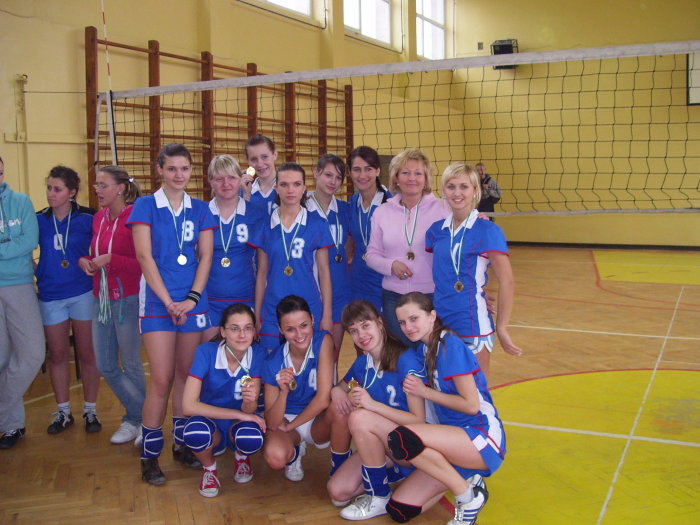 W dniach 8 i 14 marca 2008r. reprezentacja dziewcząt naszego wspaniałego Liceum zdobyła złoto w międzyszkolnych rozgrywkach w piłce siatkowej. Po zaciętej walce nasze triumfatorki pokonały wszystkich przeciwników bez straty seta. Wszystkie mecze kończyły wynikiem 2:0. W każdym elemencie gry nie miały sobie równych. Na szczególną uwagę zasługuje nasz atak. Choć losy ostatniego meczu różnie się układały, to jednak nasze dziewczęta zdobyły Mistrzostwo Powiatu w ramach IX POM. Zwycięstwa te zawdzięczamy naszej pani trener – Annie Grodzińskiej. Dziękujemy jej za to, a naszym złotkom gratulujemy! 😉
