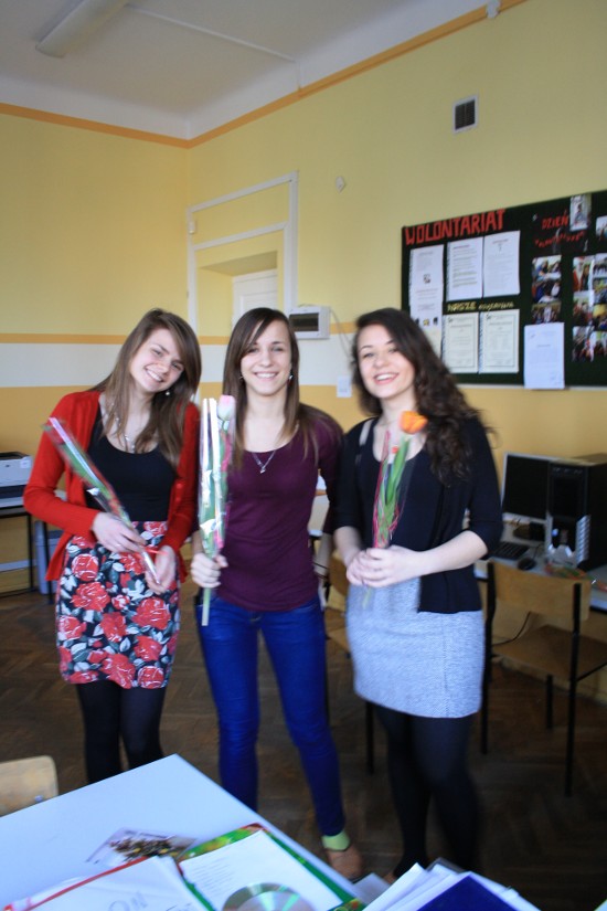 W dniu 8 marca – DNIU KOBIET – wszyscy Panowie spisali się na medal. Nie zapomnieli o płci pięknej. Już od rana na korytarzach widać było chłopców biegających z kwiatkami oraz zadowolone dziewczyny wąchające tulipany i różyczki. W każdej klasie chłopcy obdarowywali swoje koleżanki słodkimi upominkami i obsypywali kwiatkami. To właśnie dziś mogli, w taki sposób przekazać – jak ważne są dla nich kobiety.