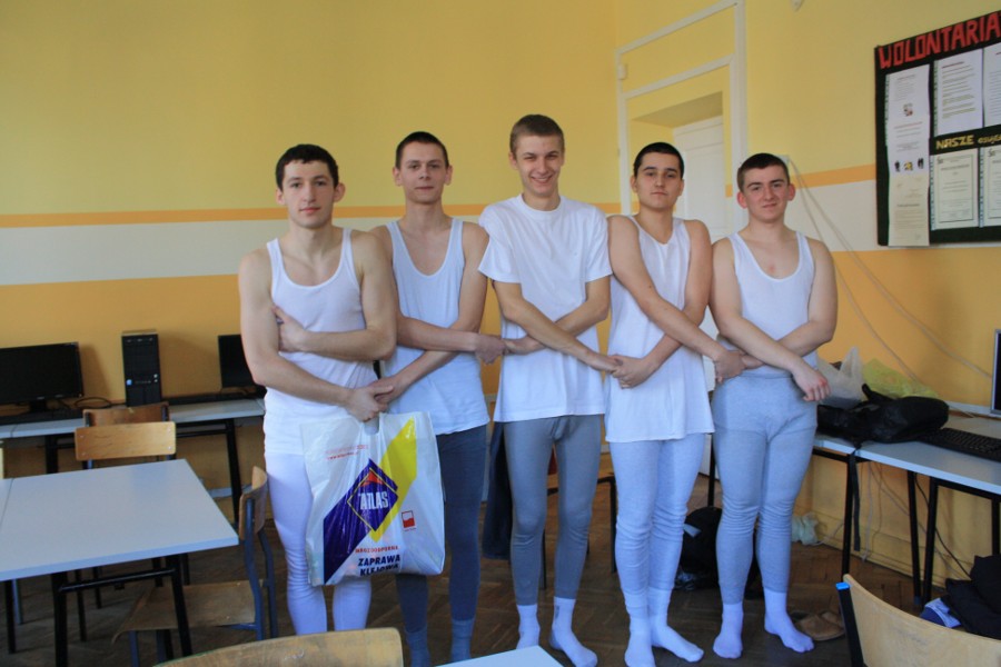 Przedstawiciele Samorządu Uczniowskiego Dariusz Grabowski i Mateusz Rosiński odwiedzili dziewczyny we wszystkich klasach, składali im miłe i zabawne życzenia, które wybranki losowały z kapelusza.