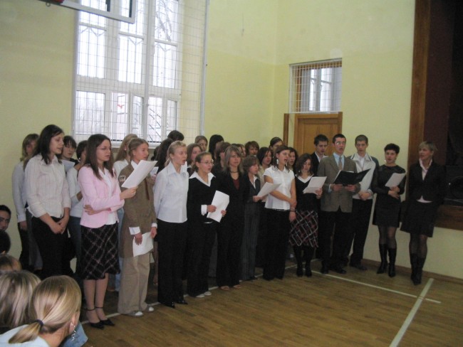 Społeczność szkolna naszego liceum uczciła narodowe święto 11 listopada akademią. Recytowane teksty ogarnęły szeroki zakres historii Polski, od czasów zaborów do odzyskania niepodległości w 1918r. Obejmowały głównie poezję i trochę prozy, z urozmaiceniem w postaci pieśni chóru i solistów. Tradycyjna treść apelu nie była dla słuchaczy nowością, co nie znaczy, że nie spotkała się z uznaniem. Zwłaszcza część muzyczna wywołała w niektórych z nas żywy odzew w postaci nucenia razem z chórem. Niektórzy też głośno wyrażali żal, że przedstawienie było tak krótkie, nie trwało nawet całej godziny lekcyjnej. W tym wypadku jednak to nie ilość zadecydowała o jakości i właściwym byłoby stwierdzenie, że tak uczniowie, jak i nauczyciele przygotowujący tę uroczystość godnie podziękowali Polakom z dawnych dni za to, że dziś jesteśmy wolni.