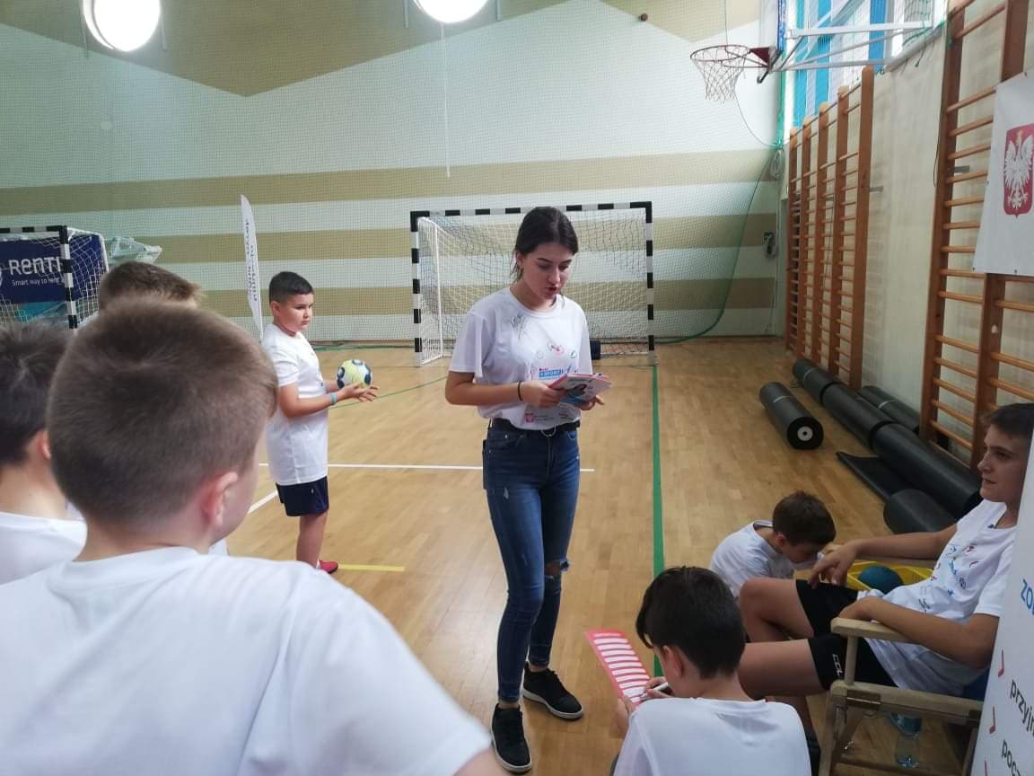 Nasi uczniowie wcielili się w rolę instruktorów. Pomagali uczniom z okolicznych szkół podstawowych w różnych konkurencjach sportowych.