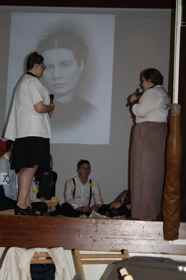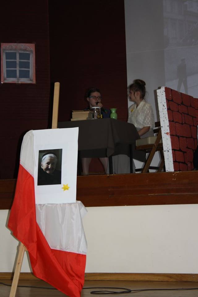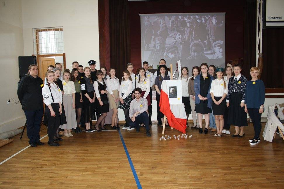 19 kwietnia 1943 roku żydowscy bojownicy stawili zbrojny opór Niemcom, którzy przystąpili do likwidacji warszawskiego getta. W 73 rocznicę wybuchu powstania Młodzież z klasy II D pod kierunkiem ucznia Kamila Kisło i p. Magdaleny Barzyczak, przygotowała sztukę „W słoiku” poświęconą pamięci Niezłomnej, Heroicznej, Odważnej, Sprawiedliwej Wśród Narodów Świata- Ireny Sendlerowej, która w czasie drugiej wojny światowej ocaliła od Zagłady 2500 żydowskich dzieci z getta warszawskiego. Jako pracownica inspekcji sanitarnej mogła przekraczać mury getta i ratować dzieci. Po aryjskiej stronie przygotowywała dla nich akty chrztu, umieszczała w polskich rodzinach i klasztorach. Prowadziła kartotekę z bibuły na której umieszczała prawdziwe i przybrane nazwiskami dzieci, zakopując to wszystko w ogrodzie w słoiku. Nigdy nie zdradziła żadnego nazwiska, nawet wtedy, gdy była torturowana przez gestapo. Irena Sendler była „Aniołem w czasie zagłady…”