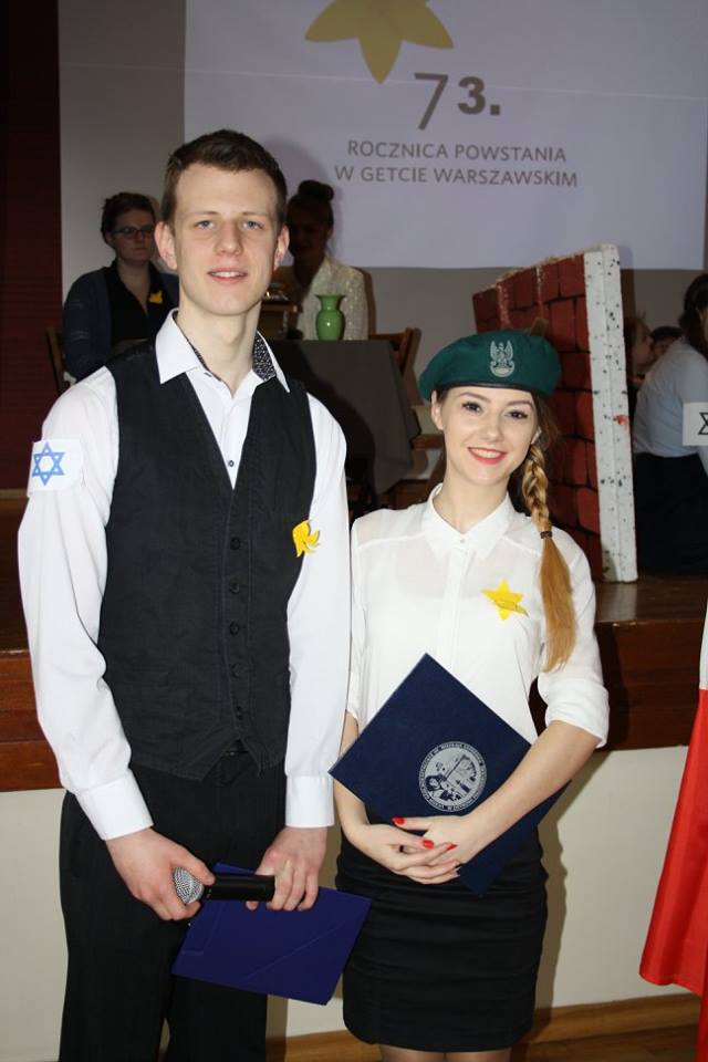 Dzisiejszej uroczystości towarzyszyła akcja „ŻONKILE” – symbol pamięci, szacunku i nadziei, związana z postacią Marka Edelmana, ostatniego przywódcy ŻOB, który w każdą rocznicę powstania składał pod Pomnikiem Bohaterów Getta bukiet żółtych kwiatów. Akcję „Żonkile” przygotowali Uczniowie pod kierunkiem p. Magdaleny Konrad, p. Izabeli Hryń, p. Sylwii Gałązka, p. Moniki Kuziak, p. Marcina Kuleszy, p. Magdaleny Barzyczak.