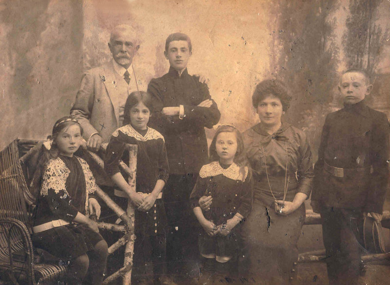 Fotografia 3 Rodzina Kraczkiewiczów, drugi szereg od lewej mąż Wacław i syn Marian, pierwszy szereg od lewej córki: Zofia, Janina i Wanda, Klementyna Zenobia i syn Stefan.