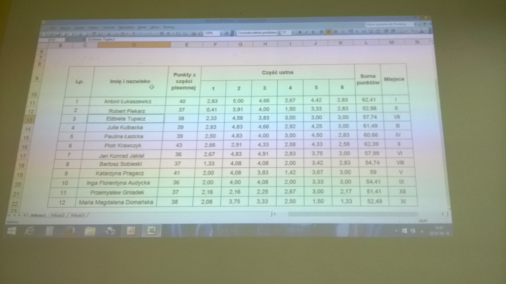 16 kwietnia Piotr Krawczyk, uczeń klasy 2 f, pod opieką p. Pawła Cieśluka brał udział w Finale Okręgowej XXXI Olimpiady Wiedzy Ekologicznej w Płocku. Olimpiada składała się z dwóch części: pierwszej pisemnej i drugiej ustnej. W części pisemnej uczeń naszego LO uzyskał najlepszy wynik (43 punkty), co oczywiście dało mu prawo przystąpienia do części ustnej, w której łącznie wzięło 12 olimpijczyków. W drugiej części konkursu jego uczestnicy musieli odpowiedzieć na sześć pytań, za które sześcioosobowy skład jury mógł w sumie przyznać 24 punkty. Piotr zdobywając łącznie 62,39 punktów uplasował się ostatecznie na drugim miejscu, choć strata punktowa do pierwszego miejsca wyniosła zaledwie 0,02 (!). Serdecznie gratulujemy, tym bardziej, że uczeń naszej szkoły był jedynym przedstawicielem powiatu ostrowskiego. Ponadto poza cennymi nagrodami rzeczowymi, Piotr wraz z szóstką najlepszych olimpijczyków etapu wojewódzkiego, wywalczył sobie prawo startu w Finale Centralnym Olimpiady Wiedzy Ekologicznej, który odbędzie się na początku czerwca w Krakowie. Trzymamy kciuki za dalsze sukcesy!