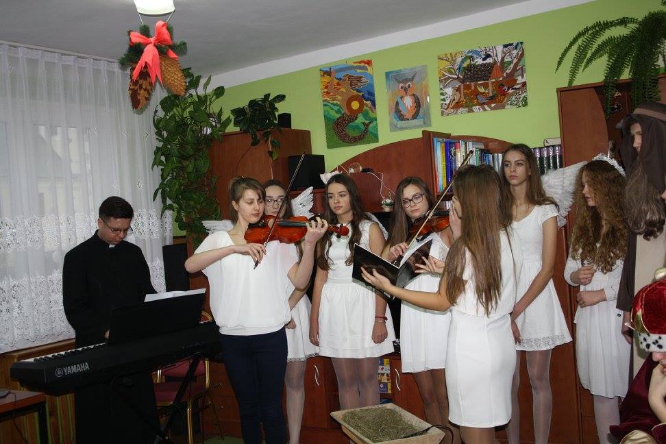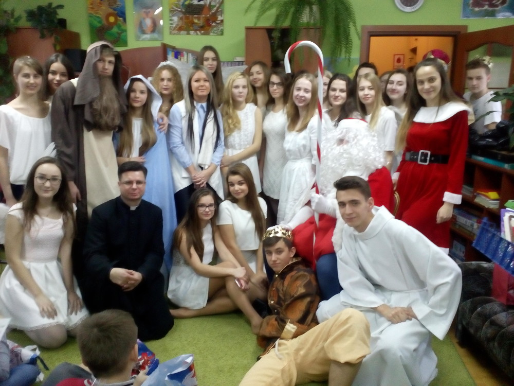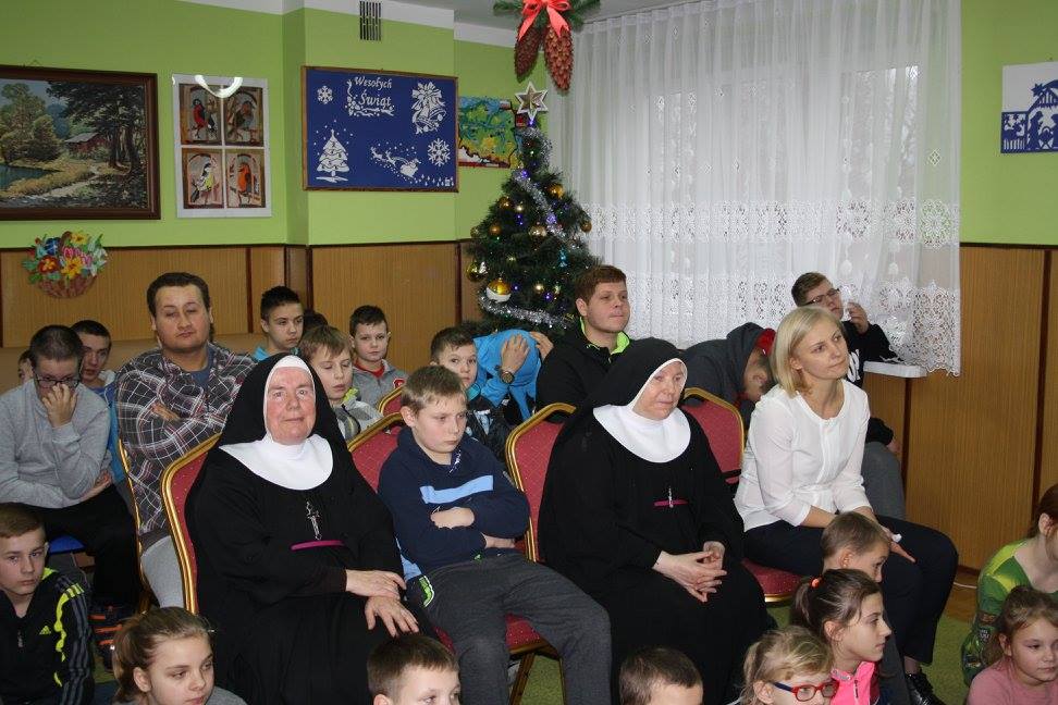 12 grudnia 2017r. młodzież naszej szkoły pod opieką p. Małgorzaty Wiercińskiej, p. Magdaleny Konrad i ks. Andrzeja Łady odwiedziła wychowanków Specjalnego Ośrodka Wychowawczego Zgromadzenia Sióstr Franciszkanek Rodziny Maryi w Brańszczyku. W programie były jasełka, drobne prezenty i wspólna zabawa.