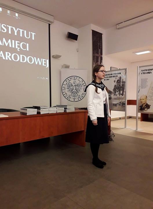 W czwartek 15 marca 2018 roku w Centrum Edukacji IPN, Przystanek Historia w Warszawie, odbył się IV ogólnopolski konkurs recytatorski, zorganizowany przez Instytut Pamięci Narodowej oraz Stowarzyszenie „Rodzina byłych więźniarek niemieckiego nazistowskiego obozu koncentracyjnego KL Ravensbrück”. W konkursie wzięła udział uczennica klasy ID – Aleksandra Śladewska, która przygotowała fragment prozy Wandy Półtawskiej „I boję się snów” oraz wiersz Marii Rutkowskiej „Smutek”. Konkurs wzbudził ogromne zainteresowanie uczniów szkół gimnazjalnych i ponadgimnazjalnych, do których był adresowany. Jury bardzo wysoko oceniło poziom konkursu, który gościom dostarczył wielu wzruszeń, kiedy uczniowie poprzez interpretacje utworów oddali pełen tragizm przeżyć więźniarek z Ravensbrűck, kobiet żyjących w ekstremalnych warunkach, które swoim życiem pokazały nam czym jest prawdziwy patriotyzm i uszanowanie drugiego człowieka. W czasie przerwy odbyła się projekcja niezwykłego, wzruszającego i nigdzie niepokazywanego filmu o Bożenie Chrostowskiej „Za kratą są zielone drzewa”. W tym roku niestety nie udało nam się wygrać głównej nagrody, ale za rok zapewne ją zdobędziemy!