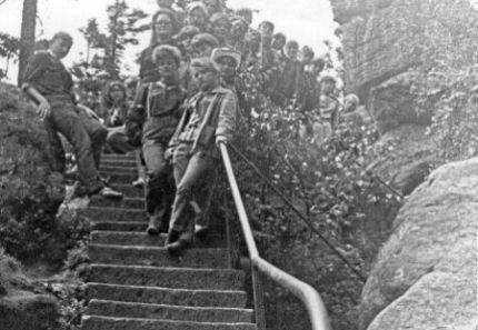 Następnego dnia po południu ruszyliśmy w dalszą drogę, do Głuchołazów. Część poszła torami, a pozostałe dziewczęta pojechały okazyjnym samochodem. Do Głuchołazów przyszliśmy nad wieczorem. Grupy, która pojechała samochodem jeszcze nie było, lecz wkrótce i oni do nas dołączyli. Nazajutrz tj. 25.VII.63r. zwiedzaliśmy fabrykę guzików i galanterii, a także fabrykę papieru i celulozy. Po obiedzie poszliśmy na basen.