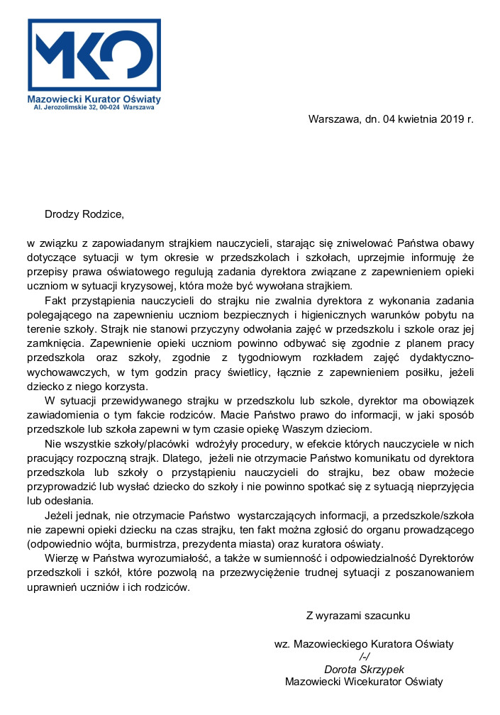 List Mazowieckiego Kuratora Oświaty do rodziców. admin | 5 kwietnia 2019 | 2018/19, Kronika | Brak komentarzy
