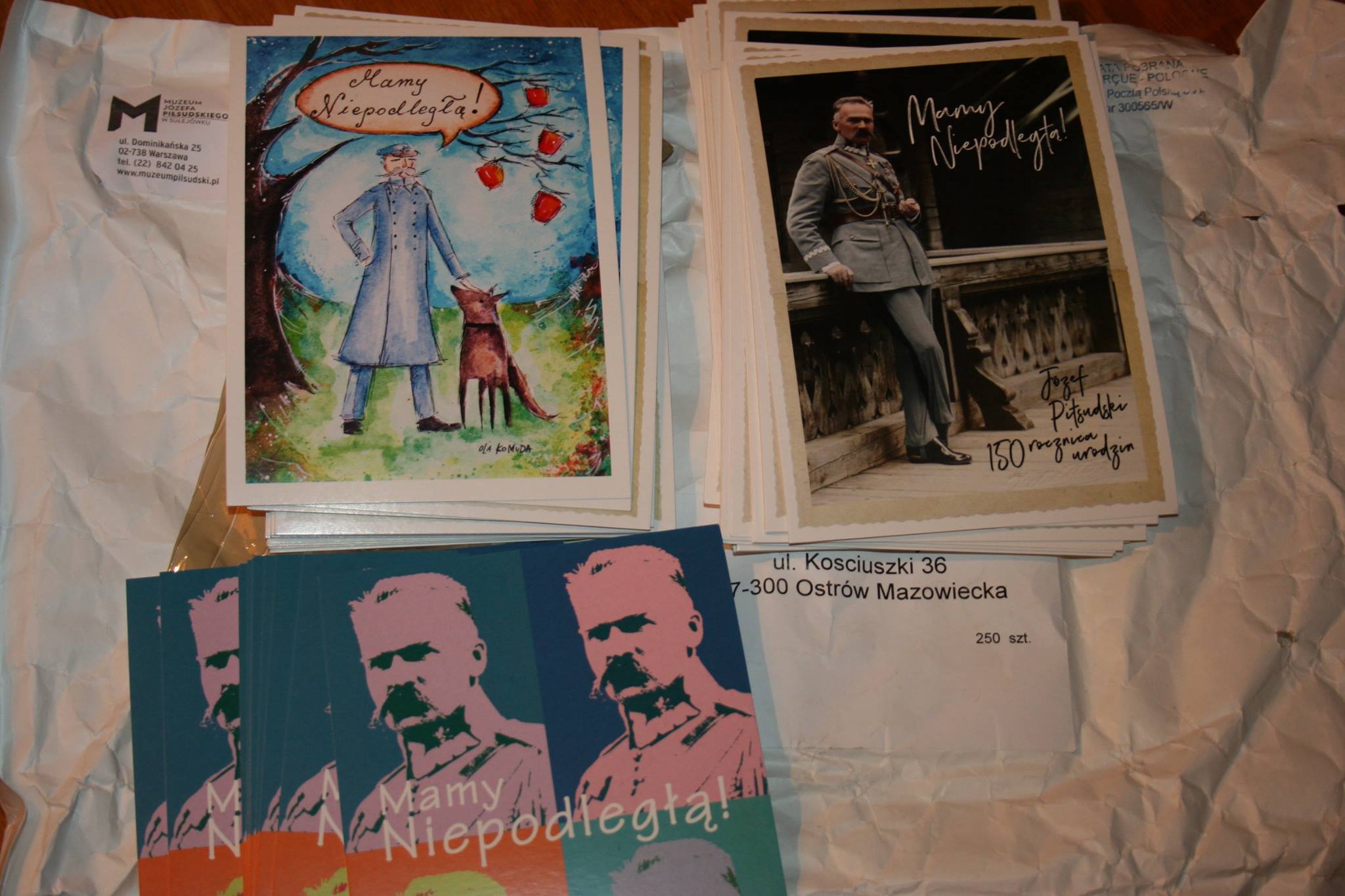 Dziś otrzymaliśmy 250 kartek pocztowych, które związane są z akcją „Mamy Niepodległą”. Jest to projekt Muzeum Józefa Piłsudskiego w Sulejówku, którego celem jest RADOSNE świętowanie 99 – rocznicy odzyskania przez Polskę NIEPODLEGŁOŚCI ! W tym roku szkolnym, My również postanowiliśmy przyłączyć się do tej akcji, dlatego zachęcamy Was drodzy Uczniowie i Nauczyciele do wysłania kartek swoim bliskim i znajomym, które są do odebrania u p. Magdaleny Barzyczak, p. Moniki Kuziak, p. Marcina Kuleszy.