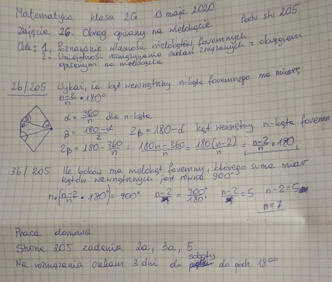 Zajęcia 26. 13 maja 2020. Okrąg opisany na wielokącie. Podręcznik str 202-204. Przesyłam materiały, kilka rozwiązanych zadań i zadania do samodzielnego rozwiązania. Zdjęcia rozwiązań proszę przesłać przez Messenger lub e-mail k.studnicki@koperniczek.net Na rozwiązania czekam 3 dni do soboty do godz. 18.00.