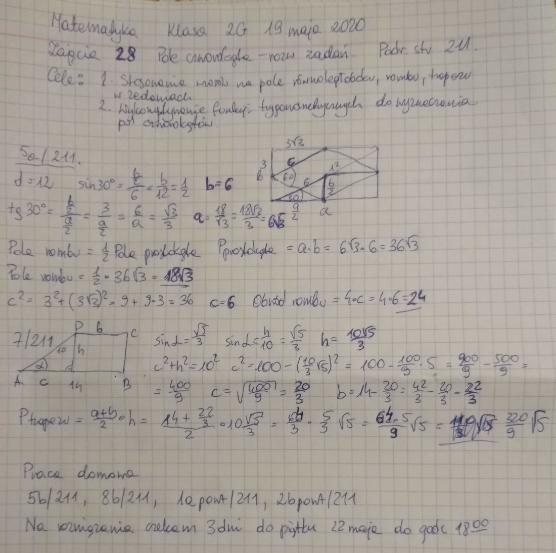 Zajęcia 28. 19 maja 2020. Pole czworokąta – rozwiązywanie zadań. Podręcznik str 208-211. Przesyłam materiały, kilka rozwiązanych zadań i zadania do samodzielnego rozwiązania. Zdjęcia rozwiązań proszę przesłać przez Messenger lub e-mail k.studnicki@koperniczek.net Na rozwiązania czekam 3 dni do piątku do godz. 18.00.