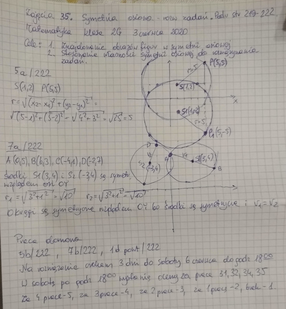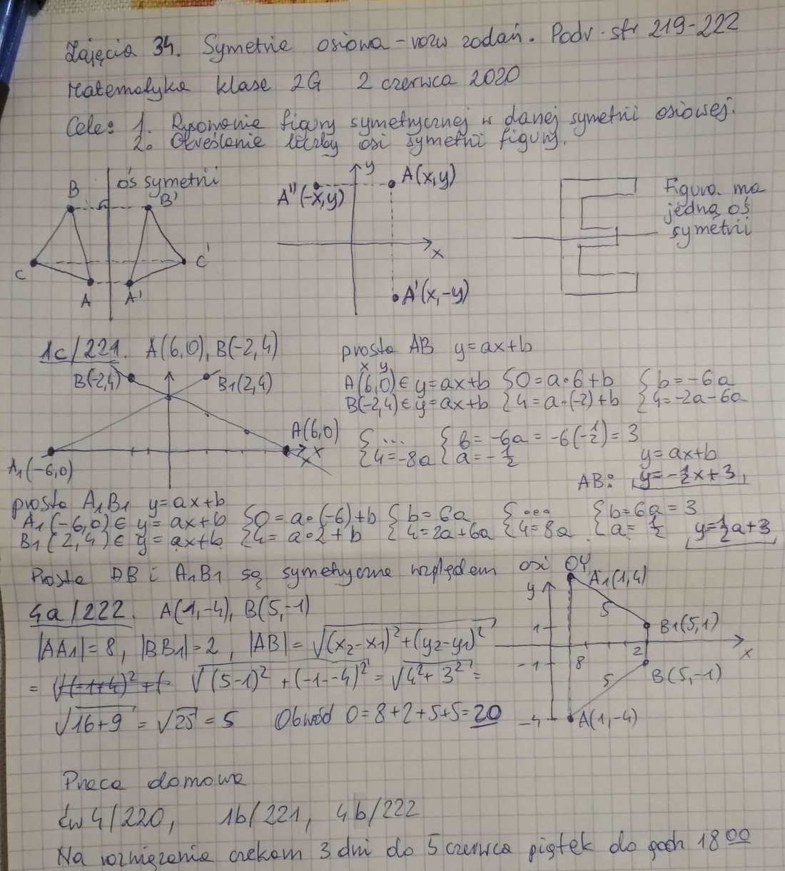 Zajęcia 35. 3 czerwca 2020. Symetria osiowa – rozwiązywanie zadań. Podręcznik str 219-222. Przesyłam materiały, kilka rozwiązanych zadań i zadania do samodzielnego rozwiązania. Zdjęcia rozwiązań proszę przesłać przez Messenger lub e-mail k.studnicki@koperniczek.net Na rozwiązania czekam 3 dni do soboty do godz. 18.00.