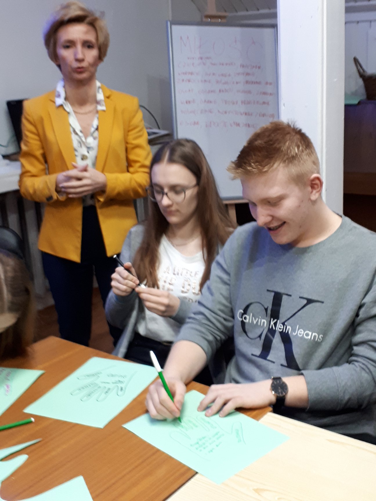 W marcu podobne przedsięwzięcie postanowiła zrealizować dla uczniów ostrowskich szkół. 12 i 13 marca dwie klasy naszego Liceum uczestniczyły w warsztatach przeprowadzonych przez p. Agnieszkę Kaczmarek. Po krótkiej części integracyjnej nastąpiła prezentacja „Mirabelki” Cezarego Harasimowicza. Książka jest opowieścią mirabelki, drzewka rosnącego na warszawskich Nalewkach, które rosnąc towarzyszyło mieszkańcom dzielnicy przez pokolenia. Opowiada historie ludzi, których już nie ma. Przetrwało wojnę. Zostało usunięte znacznie później, żeby zrobić miejsce wieżowcowi.