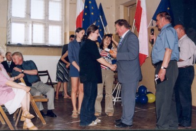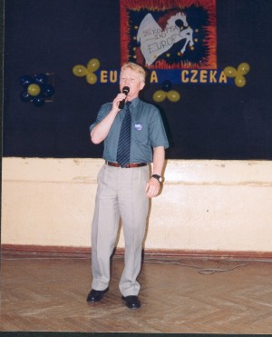 2 czerwca 2003r. zorganizowaliśmy w naszej szkole kampanię przedreferendalną rozpoczętą uroczystym korowodem pod hasłem: „Witaj Europo!”. Został odczytany apel młodzieży oraz Rady Miasta Ostrów Mazowiecka i Powiatu Ostrowskiego o przystąpieniu Polski do Unii Europejskiej. Uroczystość uświetnił swą obecnością Zbigniew Krutczenko – poseł na Sejm Rzeczpospolitej Polskiej oraz przewodniczący Rady Powiatu Krzysztof Kołodziejczyk. Główną atrakcją były występy zespołów ludowych „Bezwianka” oraz „Tonika”, które stanowią o naszym dorobku kulturowym i są polskim wkładem do zjednoczonej Europy. Ogłoszono też wyniki konkursu plastycznego, w którym nagrody ufundowane przez CEO wręczył dyrektor szkoły Włodzimierz Kazimierski.