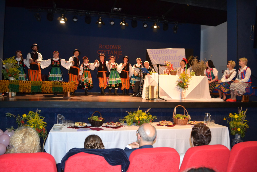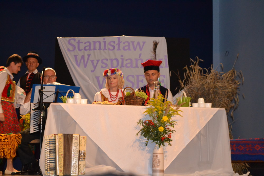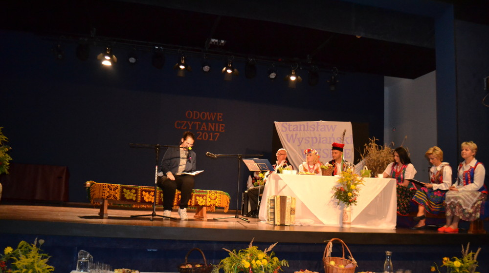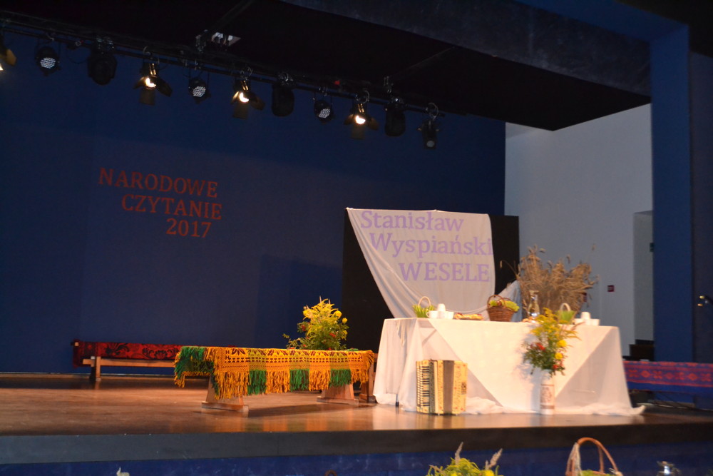 Wydarzenie miało miejsce w sali kinowej MDK – u, w scenerii weselnej bronowickiej chaty. Przy suto zastawionych stołach weselnych, obok nowożeńców zasiedli czytający młodopolski dramat. Naszą szkołę reprezentowali Mateusz Zalewski (2h), który wcielił się w rolę Poety oraz Kacper Wilczyński (2e), który zaprezentował kwestie Gospodarza w sc. 24 aktu I i Rycerza w sc. 9 aktu II. Brawo Panowie!