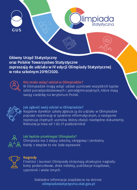 Olimpiada Statystyczna admin | 17 października 2019 | 2019/20, Kronika | Brak komentarzy Zapraszamy do udziału w Olimpiadzie Statystycznej. Zapisy u Adama Rostkowskiego do 23 października 2019.