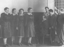 Jest to fotografia przedstawiająca absolwentów (jednych z pierwszych) tutejszego gimnazjum w Ostrowi Mazowieckiej. Zdjęcie pochodzi ze zbioru Romana Maciocha – architekta urodzonego i zamieszkałego w Ostrowi Maz. W