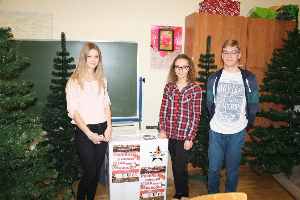 W tym roku Miejski Dom Kultury w dniach od 1 do 8 grudnia organizował akcję zbiórkową, którą wspomogliśmy, otrzymaliśmy oznakowane pudło, do którego zbierane były zabawki, słodycze, gry, książki i maskotki. W ramach akcji „PODARUJ SŁODKOŚCI DLA CHWILI RADOŚCI” w naszej szkole odbyła się w dniu 04.12.2015 r. zbiórka słodyczy oraz zabawek. Uczniowie naszej szkoły bardzo chętni włączyli się w akcję i pudło oddaliśmy wypełnione po brzegi. Z ofiarowanych słodkości i zabawek powstały paczki i zostały one przekazane dzieciom z rodzin potrzebujących z naszego miasta w dniu 11 grudnia.
