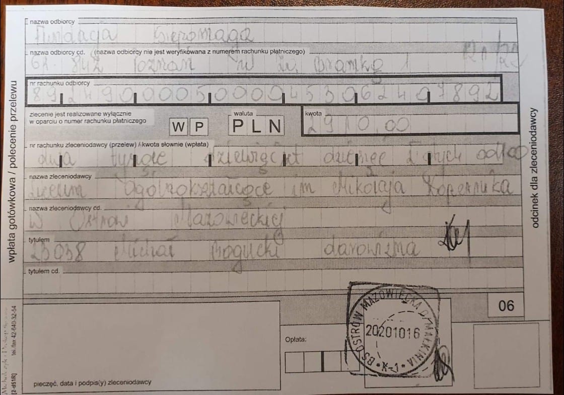 Dziękujemy za zaangażowanie, zebraliśmy prawie 3 tysiące (dokładna kwota będzie podana po podliczeniu przez bank).