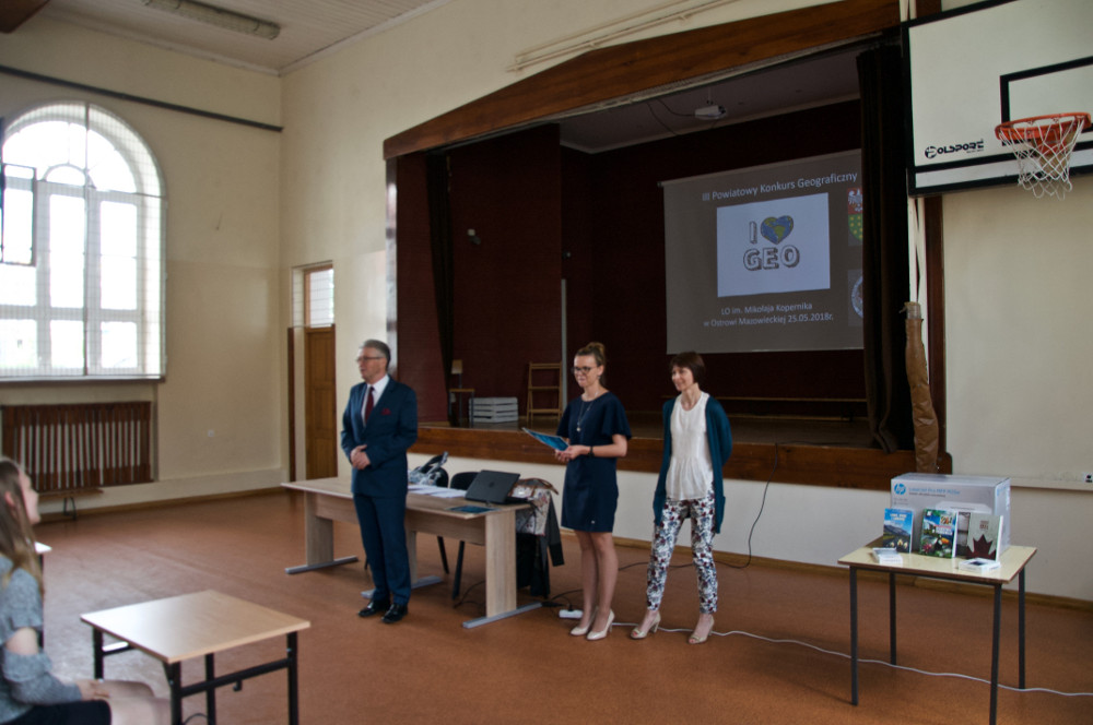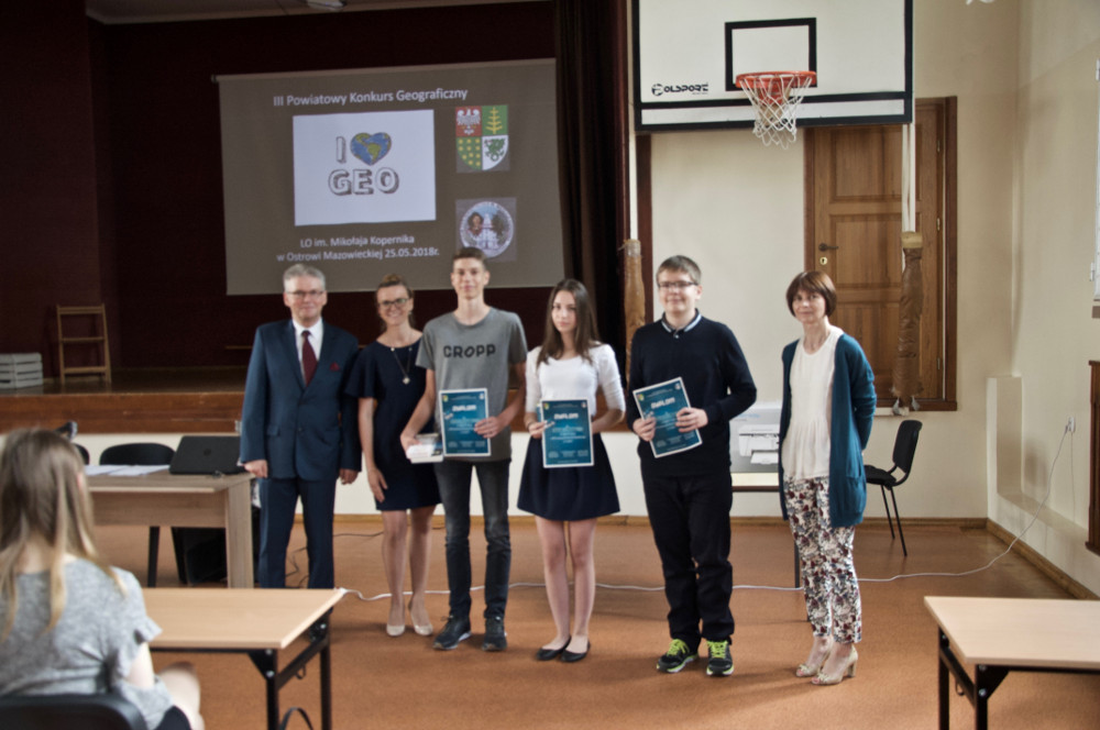 Dnia 25. maja w LO odbył się III Powiatowy Konkurs Geograficzny „I ❤ GEO”, pod patronatem Starosty Ostrowskiego Zbigniewa Kamińskiego. Wzięło w nim udział 29 uczniów z 5 gimnazjów Powiatu Ostrowskiego. Nagrodzeni uczniowie to: III miejsce – Paweł Prusaczyk z wynikiem 69 punktów z Gimnazjum nr 4 w Ostrowi Maz., II miejsce – Andżelika Mórawska, uczennica Gimnazjum w Jasienicy z wynikiem 77 punktów, a I miejsce w tym roku ponownie przypadło uczniowi Gimnazjum nr 1 w Ostrowi Mazowieckiej – Bartoszowi Hanowi, który zdobył 96/143 punkty. Zwycięzcom serdecznie gratulujemy i zapraszamy za rok! Mamy nadzieję, że liczba chętnych znów wzrośnie!