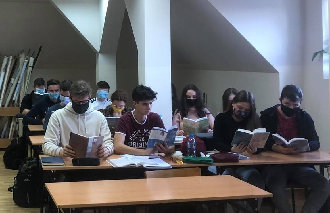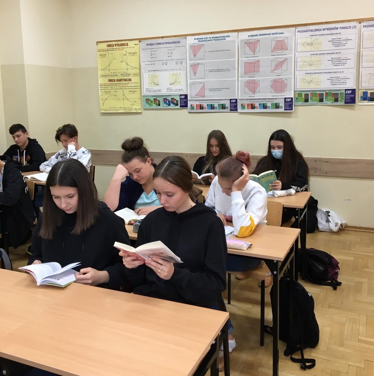 Finał akcji polegający na pokazaniu się z książką i uwiecznieniu tego na zdjęciu, poprzedziła promocja wydarzenia m.in. poprzez rozmieszczenie na drzwiach do sal lekcyjnych okolicznościowych kartek z recenzjami wybranych dzieł. Wszystkie recenzje (napisane zarówno przez uczniów jak i nauczycieli) będą sukcesywnie publikowane na Fb Biblioteki.