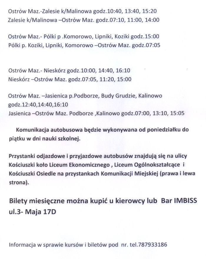 Ostrów Maz (dworzec autobusowy) – 7.48; 12.08