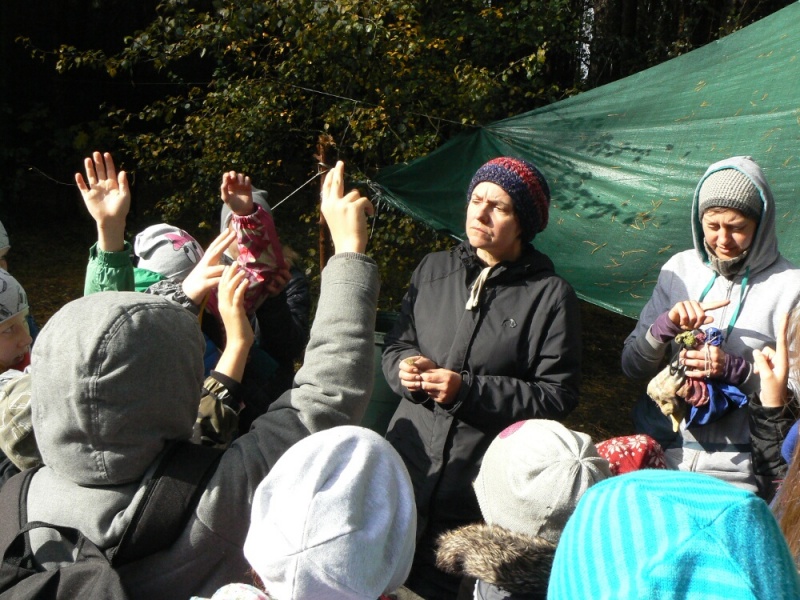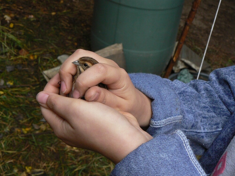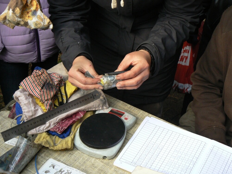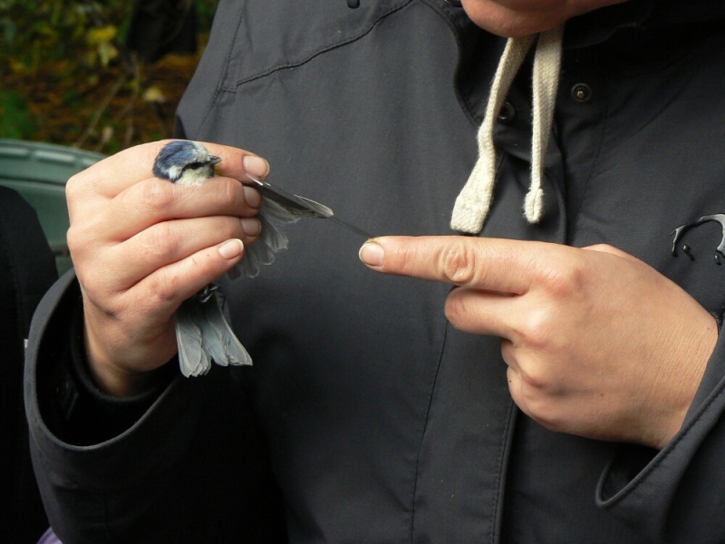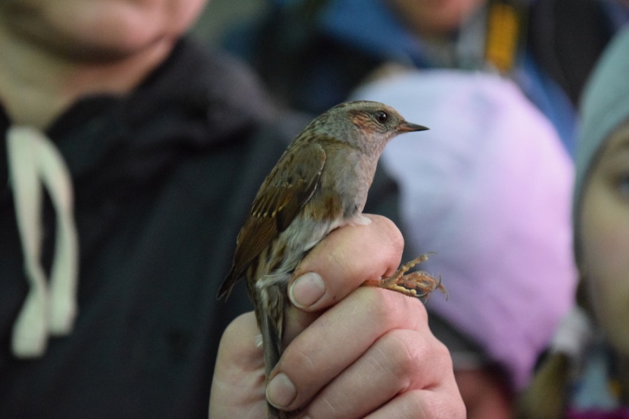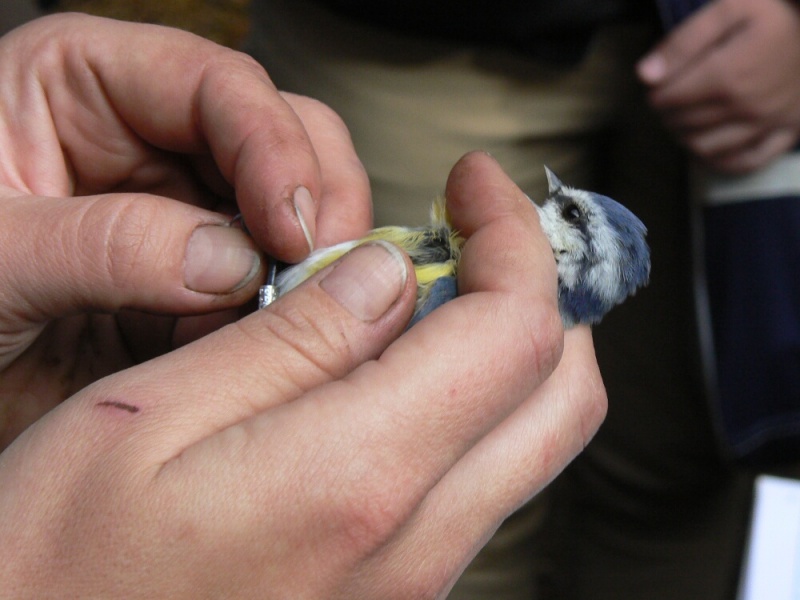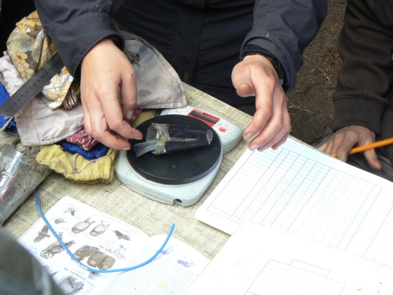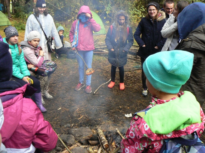 Wielkim walorem wizyty w obozie była możliwość podpatrzenia pracy jego załogantów, polegającej m.in. na wyjmowaniu ptaków z sieci, a następnie na ich obrączkowaniu, połączonym z wykonywanymi przy tej okazji różnymi pomiarami (np. wieku, wagi, długości skrzydła, ogona … etc.). Warto wspomnieć, iż podczas naszego około 3-godzinnego pobytu w obozie schwytano 34 osobniki ptaków, wśród których znalazła się sóweczka – najmniejsza w naszym kraju lęgowa sowa. Ponadto do sieci wpadły także: modraszki, kapturki, potrzosy, pierwiosnki, pokrzywnica i rudzik. Po zaspokojeniu wiedzy ornitologicznej przyszedł czas na zaspokojenie głodu. A w warunkach obozowych najlepiej smakują pieczone na ognisku kiełbaski. Na szczęście pogoda, która od rana nas nie rozpieszczała, uległa znacznej poprawie – przestał padać deszcz i wyszło słońce.