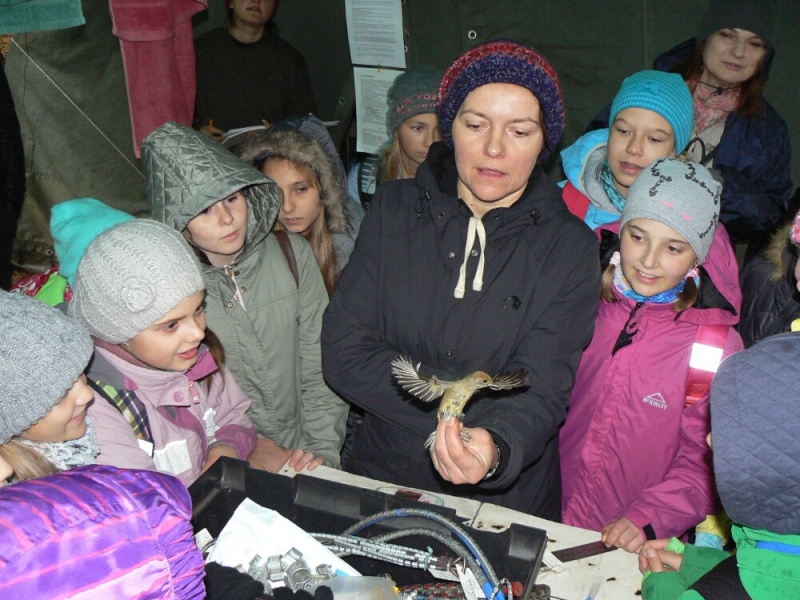 Dnia 6 października grupa sześciu uczniów klasy 1 F naszego Liceum pod opieką p. Pawła Cieśluka uczestniczyła w wycieczce „SIEMIANÓWKA V – Przyroda i kultura wschodniego pogranicza Polski”. W tym roku organizatorem tego wyjazdu było Ostrowskie Stowarzyszenie LUDZIE Z PASJĄ, a wśród uczestników, oprócz naszej młodzieży, znaleźli się również uczniowie szkół podstawowych z Ostrowi Mazowieckiej (w sumie 46 osób wraz z opiekunami). Wyjazd rozpoczął się wizytą w Polowym Obozie Ornitologicznym Akcja Siemianówka, rozbitym tuż pod białoruską granicą, przy południowo-wschodnich krańcach Zbiornika Siemianówka. W tym roku obóz (już po raz piętnasty) rozpoczął swoją działalność 1 sierpnia. Do dnia naszego przyjazdu naukowcy-wolontariusze, schwytali i zaobrączkowali prawie sześć tysięcy ptaków, należących do 71 gatunków. Pełniąca podczas naszej wizyty funkcję kierownika obozu p. Halina Pietrykowska, przekazała młodzieży podstawowe informacje o migracjach ptaków, gatunkach migrujących, technikach chwytania ptaków i celach ich obrączkowania. Uczniowie obejrzeli różne rodzaje obrączek przeznaczonych dla dużych i małych osobników. Zostali też poinstruowani, że w razie znalezienia zaobrączkowanego ptaka należy przekazać numer obrączki oraz dane na temat daty, miejsca znalezienia i stanu ptaka do Stacji Ornitologicznej Muzeum i Instytutu Zoologii PAN z Gdańska, która pełni funkcję krajowej centrali obrączkowania ptaków.