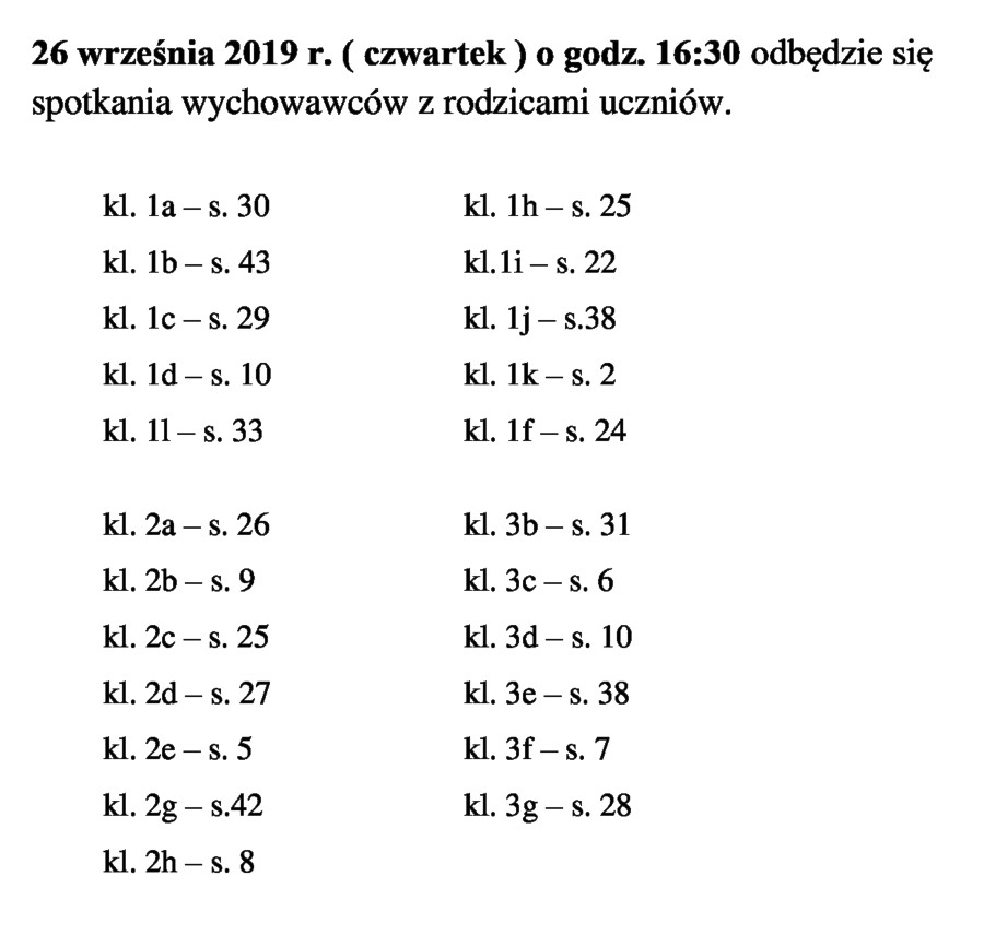 Spotkania wychowawców klas z rodzicami uczniów – 26.09.2019 admin | 25 września 2019 | 2019/20, Kronika, Ogłoszenia | Brak komentarzy