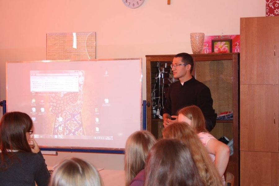 W dniu 15 września wolontariusze mieli okazję spotkać się z absolwentem, klerykiem Dariuszem Grabowskim. Darek ukończył nasza szkołę w 2012r. Od pierwszej klasy chętnie angażował się we wszystkie akcje organizowane w Szkolnym Klubie Wolontariatu. Tego dnia przyszedł z misją do młodszych kolegów. Na dzień dzisiejszy mamy już ponad 40 – tu chętnych wolontariuszy.